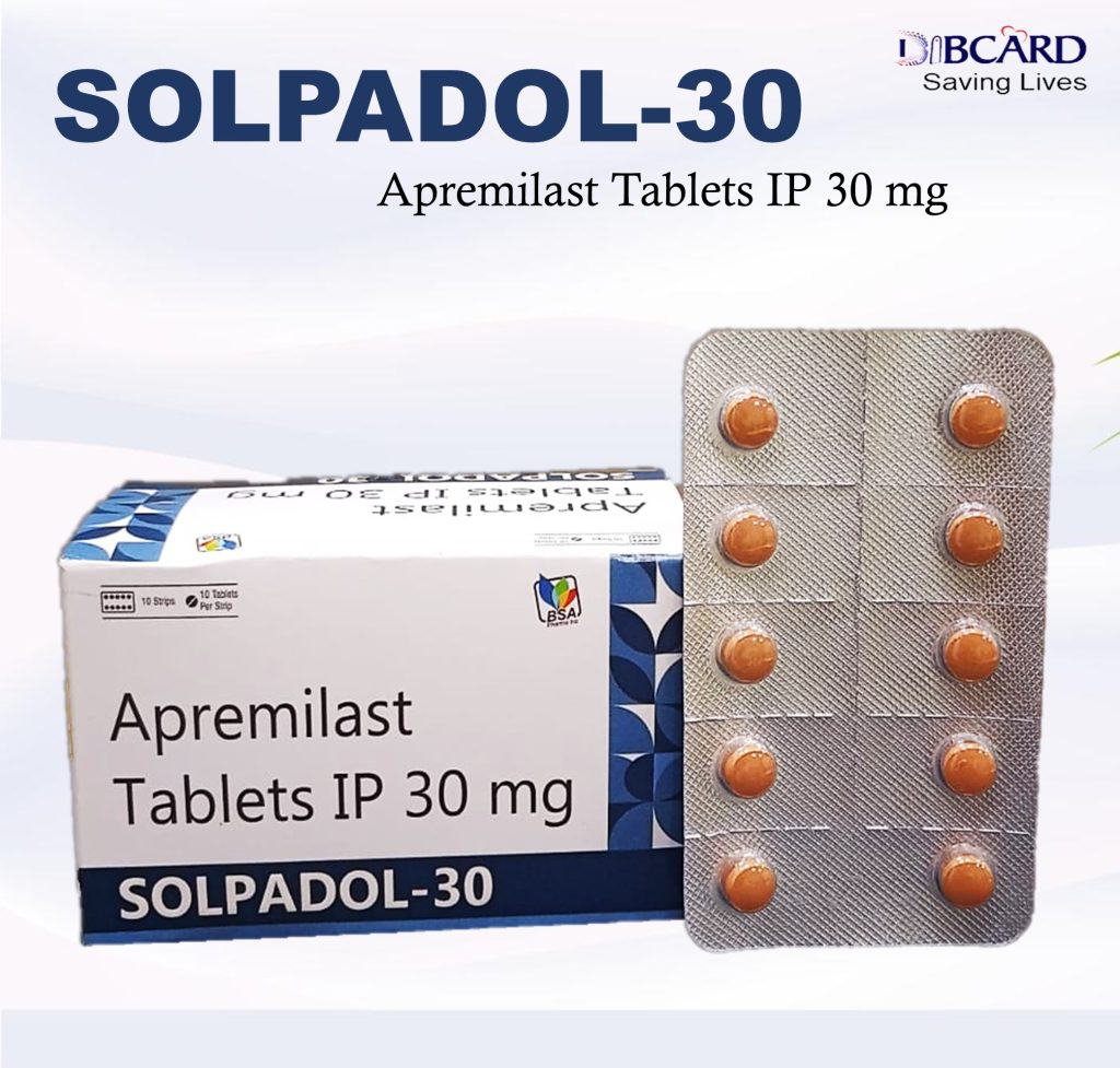 Ans: Solpadol-30 Tablets are used to treat psoriatic arthritis and plaque psoriasis by reducing inflammation and regulating immune responses.Q2: Are there any side effects of Apremilast Tablets IP 30 mg?